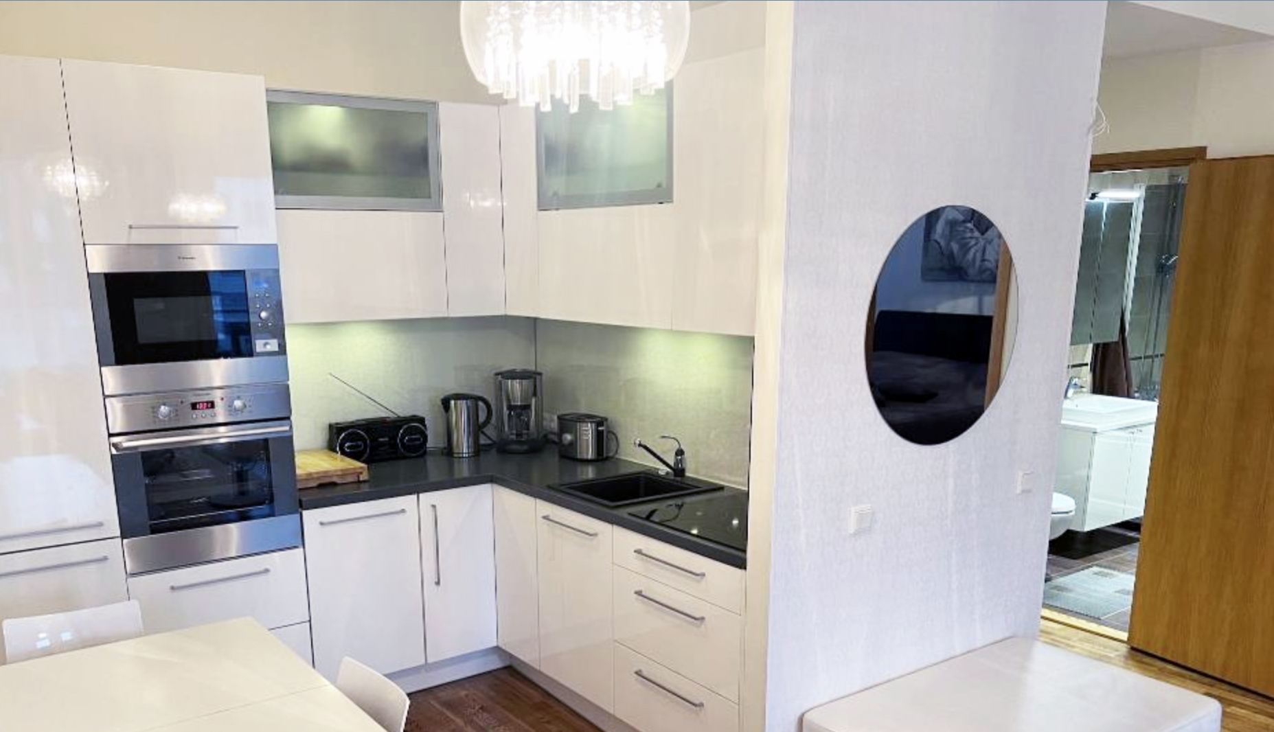 Upea kahden makuuhuoneen ylimmän kerroksen kalustettu asunto Tallinnan sydämessä Foorum Keskuksessa erinomaisten palveluiden parissa. Asunnon iso lasitettu parveke avautuu sisäpihan suuntaan. Foorum keskuksen monipuoliset palvelut löytyvät samasta rakennuksesta. Asunto on erinomaisella sijainnilla lomalaisia ajatellen; 950 metrin kävelymatka Tallinnan satamasta ja vanhaan kaupunkiin reilu kilometrin kävelymatka. Ympäristössä runsaasti ruokaravintola ja kauppoja shoppailua varten. Asunnossa on varusteltu keittiö. Vuodevaatteet ja pyyhkeet ovat valmiina. Varatessasi asunnon Kotimaailmasta, koko huoneisto on käytössäsi juuri sen ajan kuin tarpeesi on. Loppusiivous kuuluu hintaan. Asunto sijaitsee ylimmässä kerroksessa. Asuntoon sisältyy oma autopaikka. LEMMIKIT KIELLETTY 65 m2 | Makuuhuoneet 2 | Pesuhuoneet 1| Kylpyamme 1 | Parivuode 2 | Autopaikka | Hissi | Loppusiivous kuuluu hintaan Varustelu: WIFI, TV, kahvinkeitin, vedenkeitin, leivänpaahdin, mikroaaltouuni, astianpesukone, keittiötarvikkeet, pyykinpesukone, lakanat, pyyhkeet Lähin ruokakauppa 500 m