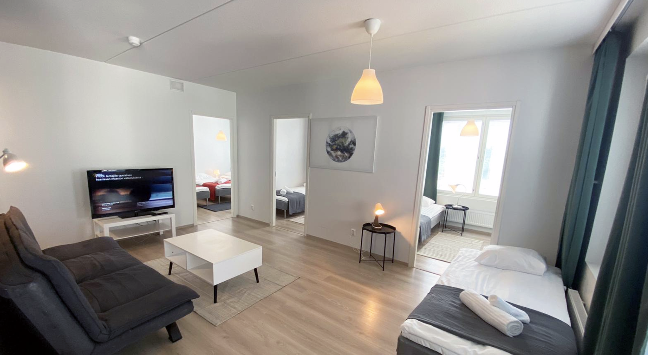 Ihastuttava neliö Tuusulan Sulassa Rauhallinen asuinalue Riihikallion palvelujen läheisyydessä. Tuusulanväylä kulkee alueen länsipuolella tarjoten sukkelat yhteydet Järvenpään ja Helsingin suuntaan niin omalla autolla kuin bussillakin. Tuusulan itäväylä kulkee alueen eteläpuolella ja sitä pitkin pääsee kätevästi ja nopeasti myös Keravalle. Päiväkodit, koulut ja päivittäistavarakauppa löytyvät läheltä. Todella siisti ja tilava neliö saunalla 2017 valmistuneessa talossa. Asumismukavuutta lisää oma sauna. Upea lasitettu parveke tuo yhden lisähuoneen aikaisesta keväästä pitkälle syksyyn. Asunto soveltuu täydellisesti työporukalle tai perheelle. Asunnossa on varusteltu keittiö. Vuodevaatteet ja pyyhkeet ovat valmiina. Varatessasi asunnon Kotimaailmasta, koko huoneisto on käytössäsi juuri sen ajan kuin tarpeesi on. Joustava sisäänkirjautuminen myös ilta- ja yöaikaan ilman lisäveloitusta. 78 m2 | Makuuhuoneet 3 | Pesuhuoneet 1| Sauna | Single-vuode 6 | Hissi, 2. krs | Parkkipaikka Varustelu: WIFI, TV, kahvinkeitin, vedenkeitin, leivänpaahdin, mikroaaltouuni, keittiötarvikkeet, pyykinpesukone, silitysrauta, hiustenkuivaaja, lakanat, pyyhkeet Lähin kauppa: 800m Lähin bussipysäkki: 550m